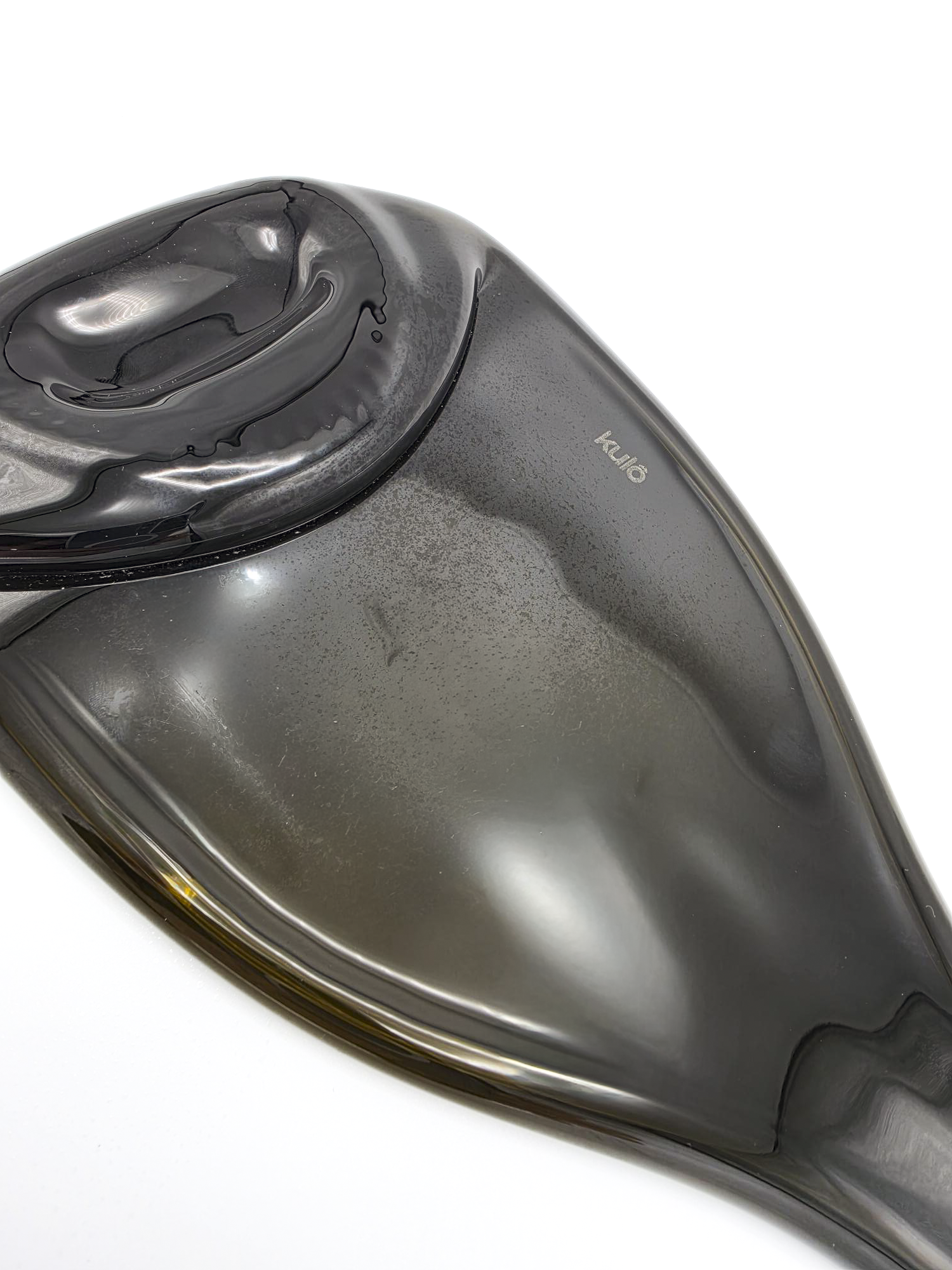 Planche réalisée à partir d’une bouteille de vin de type Bourgogne, thermoformée dans un four. Chaque pièce est unique, avec des variations légères de teintes et de formes par rapport aux photos présentées. Cul parfois bombé et parfois plat.
