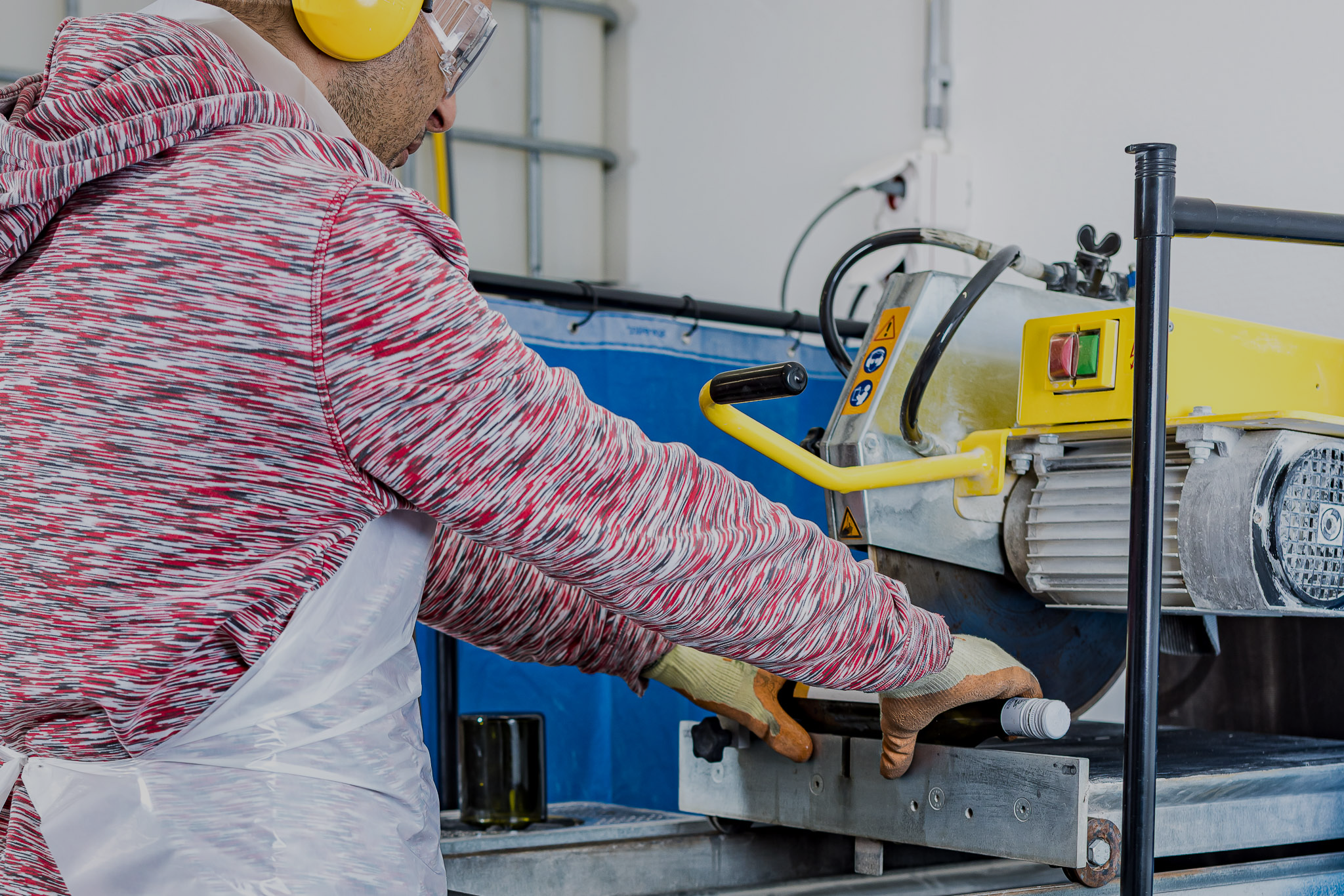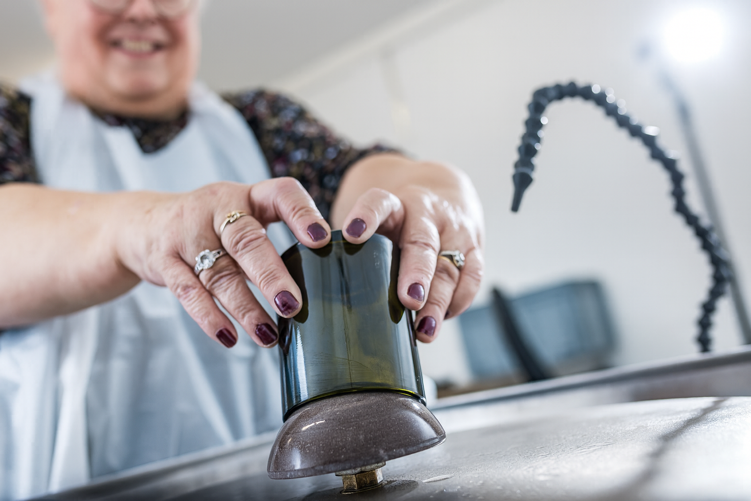 Chaque bouteille est soigneusement collectée, découpée et transformée par petites séries. Derrière l’apparente simplicité, un processus long et rigoureux mêle savoir-faire manuel et outillage spécialisé, sans automatisation.